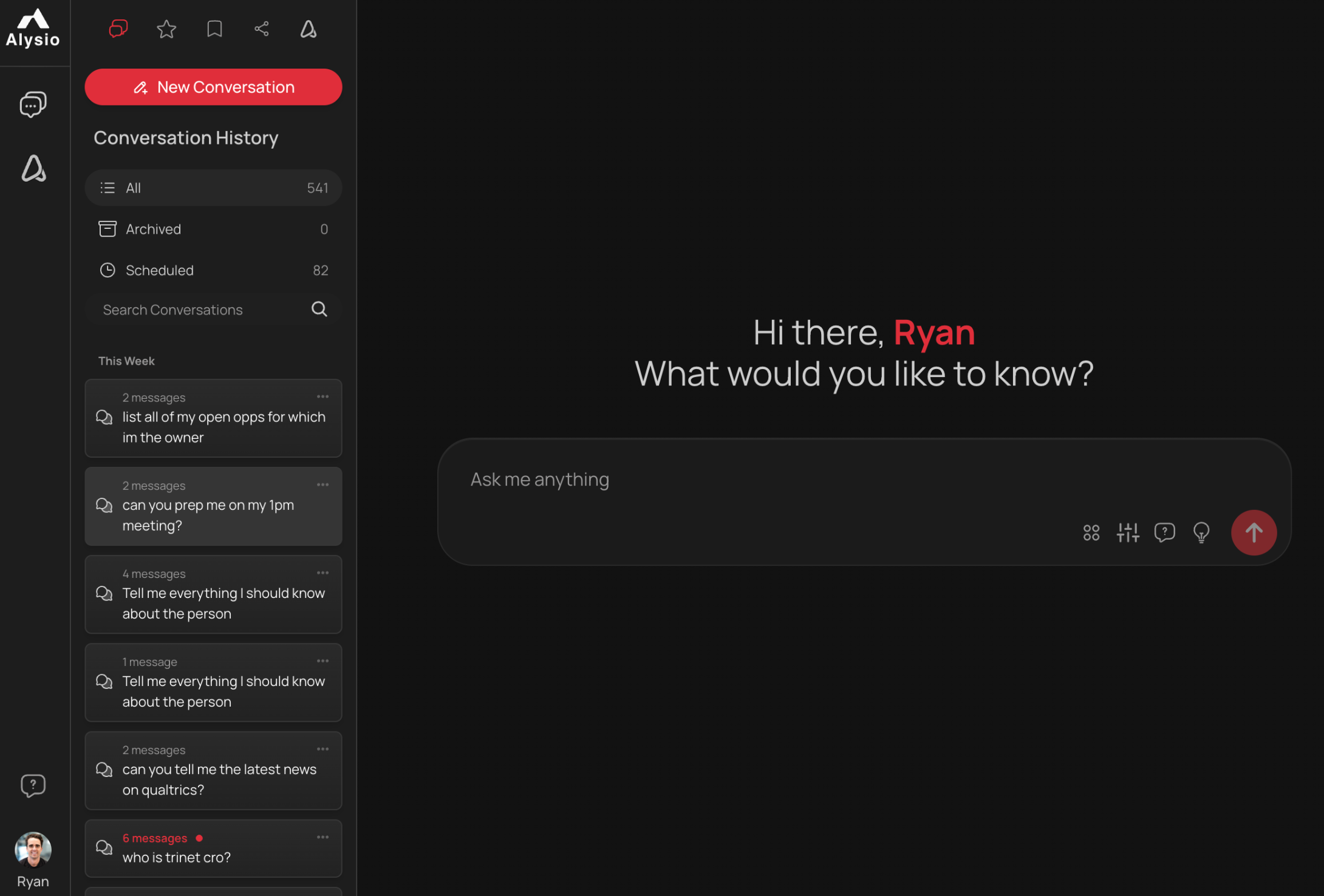 A couple of reasons. The first is that Alysio brings you answers and recommendations based on YOUR data, contextualized for how your business operates. The second is that Alysio gives you the ability to take action directly in your systems: update that account record, schedule a meeting, and enrich data for outbounding–all in one place.